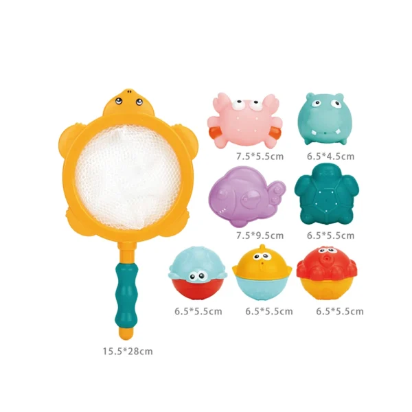 Set jucării de baie cu plasă de pescuit și animăluțe, Huanger HE0249 (19179)
