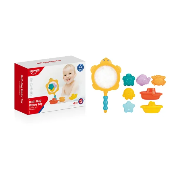 Set jucării de baie cu plasă de pescuit, animăluțe și bărcuțe, Huanger HE0265 (19032)