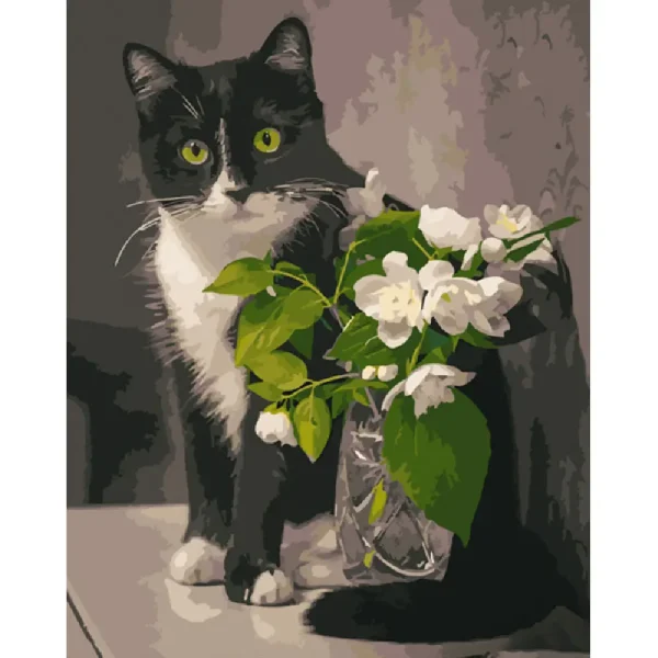 Pictura pe numere „Pisica cu flori” , 40×50 cm (GS1021)