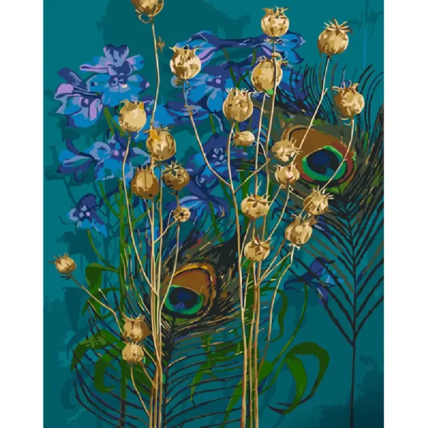 Pictura pe numere „Pene de paun”, 40×50 cm (GS1447)