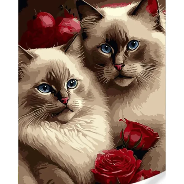 Pictura pe numere „Pisici in trandafiri”, 40×50 cm (GS1618)