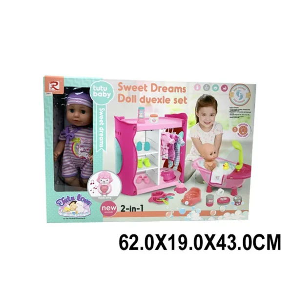 Păpușă cu sunete, completă cu garderobă și accesorii (22041)