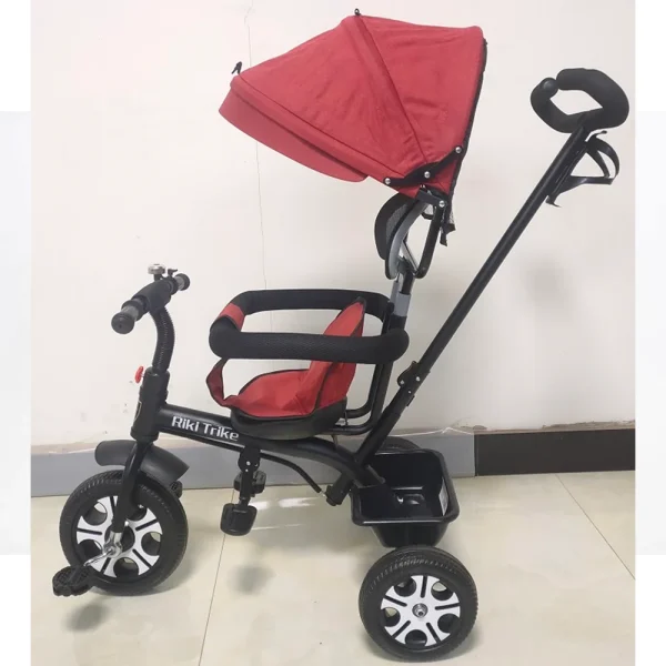 Tricicletă-cărucior cu trei roți, material ECO, roți gonflabile (RT688 / 1 rosie)