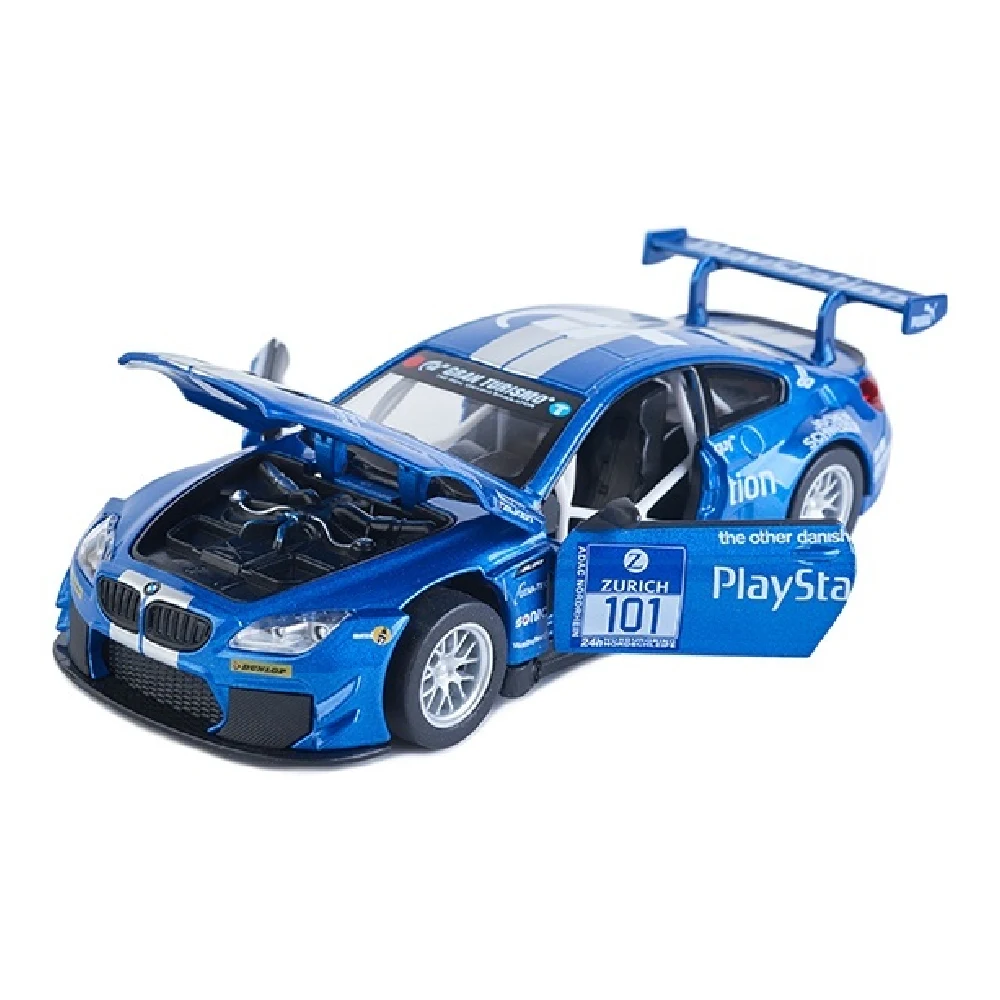 Mașină din metal 1:24 BMW M6 GT3 albastru cu sunete si lumini (se deschid usile) (68255A/1)