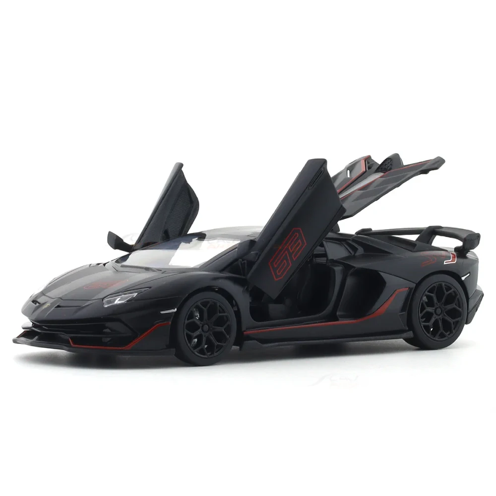 Mașină din metal 1:24 Lamborghini Aventador SVJ negru cu sunete si lumini (se deschid usile) (68269A/2)