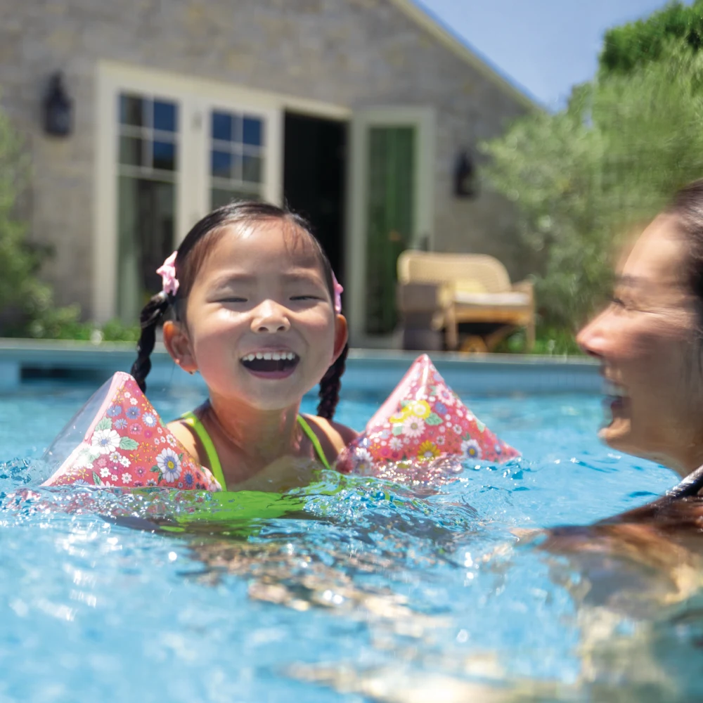 Fiecare aripioară este prevăzută cu două camere de aer independente, contribuind la o susținere mai sigură. Designul floral colorat este atractiv vizual și ușor de observat în apă. Produsul este destinat utilizării în piscină sau alte spații de agrement acvatic, exclusiv sub supravegherea unui adult.