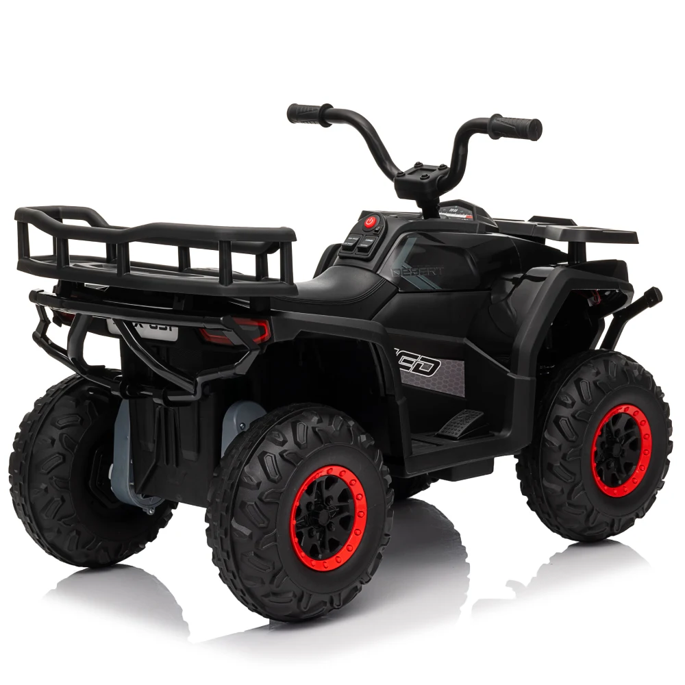 Confortul este susținut de scaunul din eco-piele, iar roțile din EVA contribuie la o rulare mai silențioasă și reduc vibrațiile. ATV-ul este dotat cu efecte de iluminare și muzică, oferind un plus de realism și distracție în timpul plimbărilor.