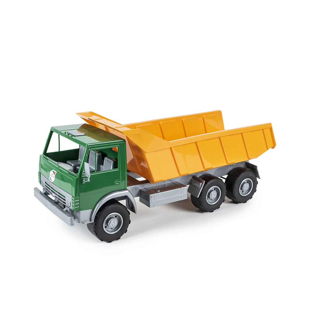 Autospecială basculantă pentru construcții, recomandată copiilor de 3+ ani, realizată din plastic rezistent și non-toxic, cu dimensiuni de 500 × 195 × 215 mm. Ideală pentru joacă creativă și transportarea materialelor în jocurile de construcții.