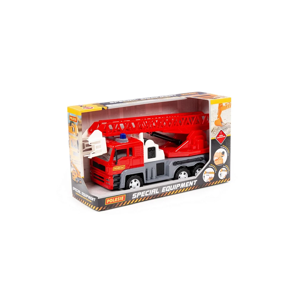 Autospeciala de pompieri cu inerție este o jucărie robustă și atractivă, concepută pentru copiii pasionați de vehicule speciale. Modelul face parte din seria Almaz, recunoscută pentru designul realist și dimensiunile generoase. Camionul este echipat cu scară extensibilă și mecanism de deplasare cu inerție, oferind un joc dinamic și captivant.