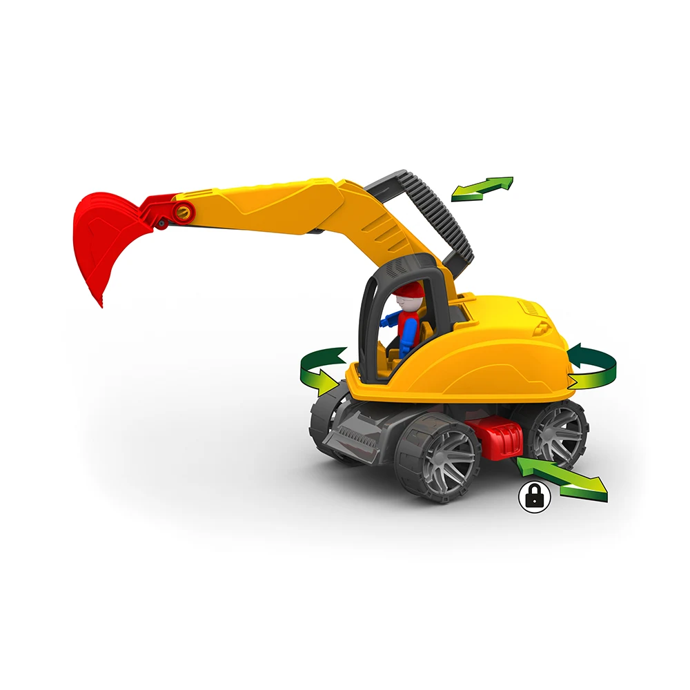 Fabricat din plastic durabil, excavatorul rezistă la utilizare intensă, atât în interior, cât și în exterior (curte, nisip, parc). Brațul de excavare este total funcțional, permițând copilului să ridice, să sape și să mute materiale ușoare, imitând perfect mașinile adevărate de construcții.