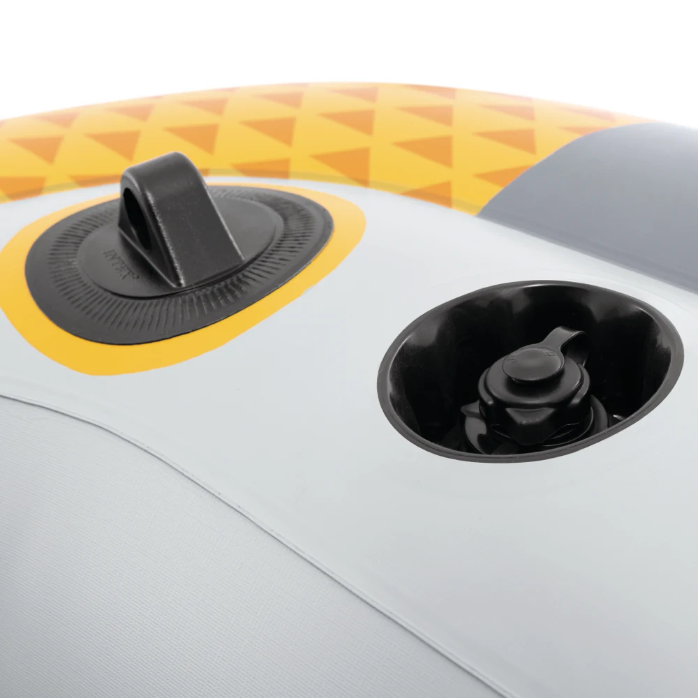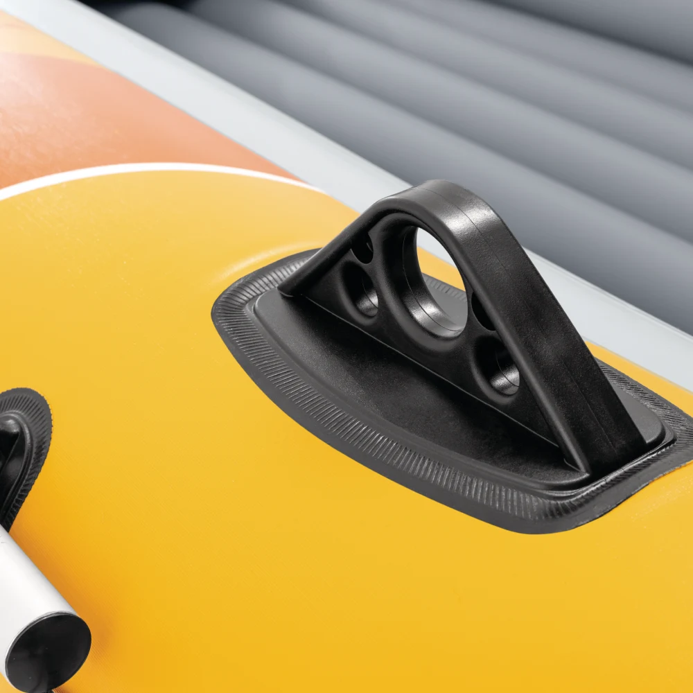 Podeaua gonflabilă, împreună cu cele două scaune gonflabile individuale, asigură o poziție stabilă și un plus de confort în timpul șederii. Pentru manevrare ușoară, barca este prevăzută cu mânere de prindere, frânghie perimetrală și suporturi laterale pentru vâsle, facilitând controlul direcției.