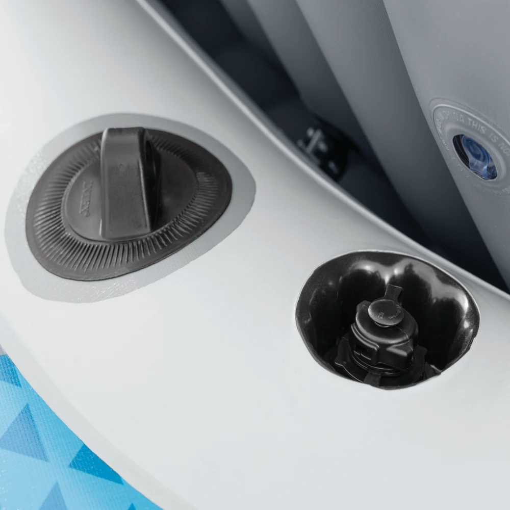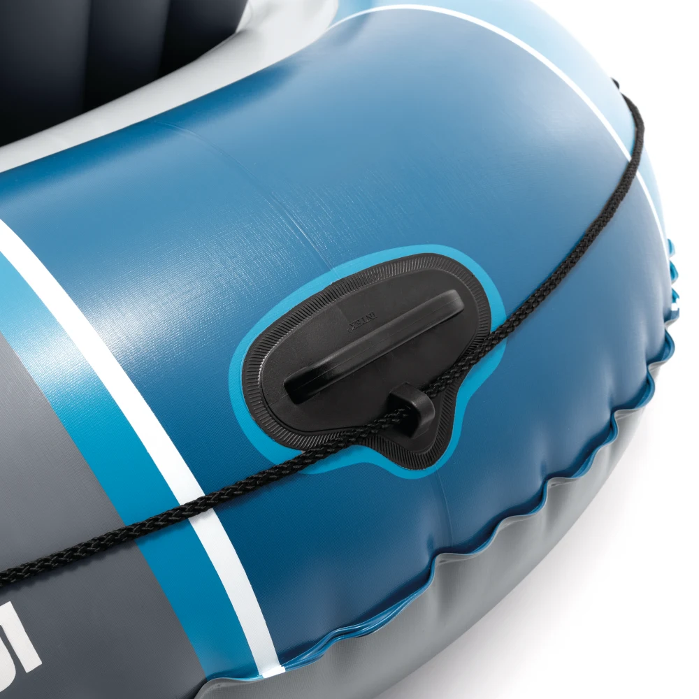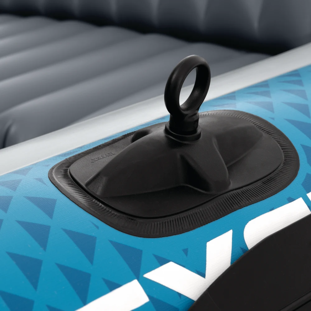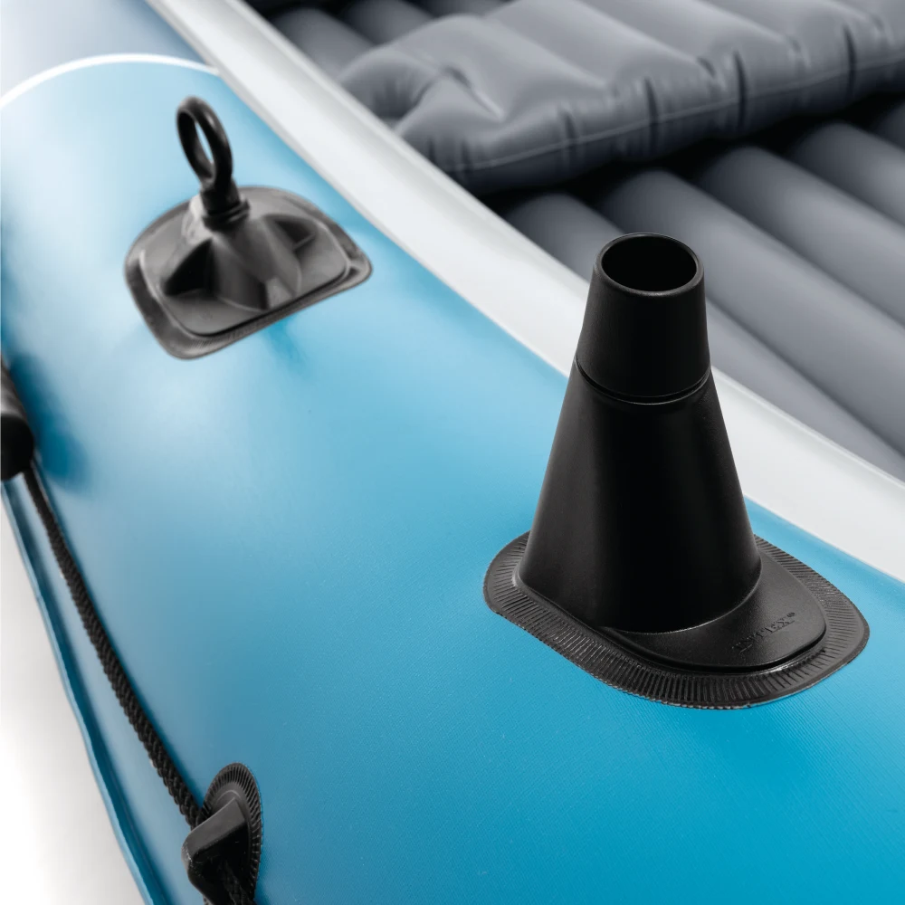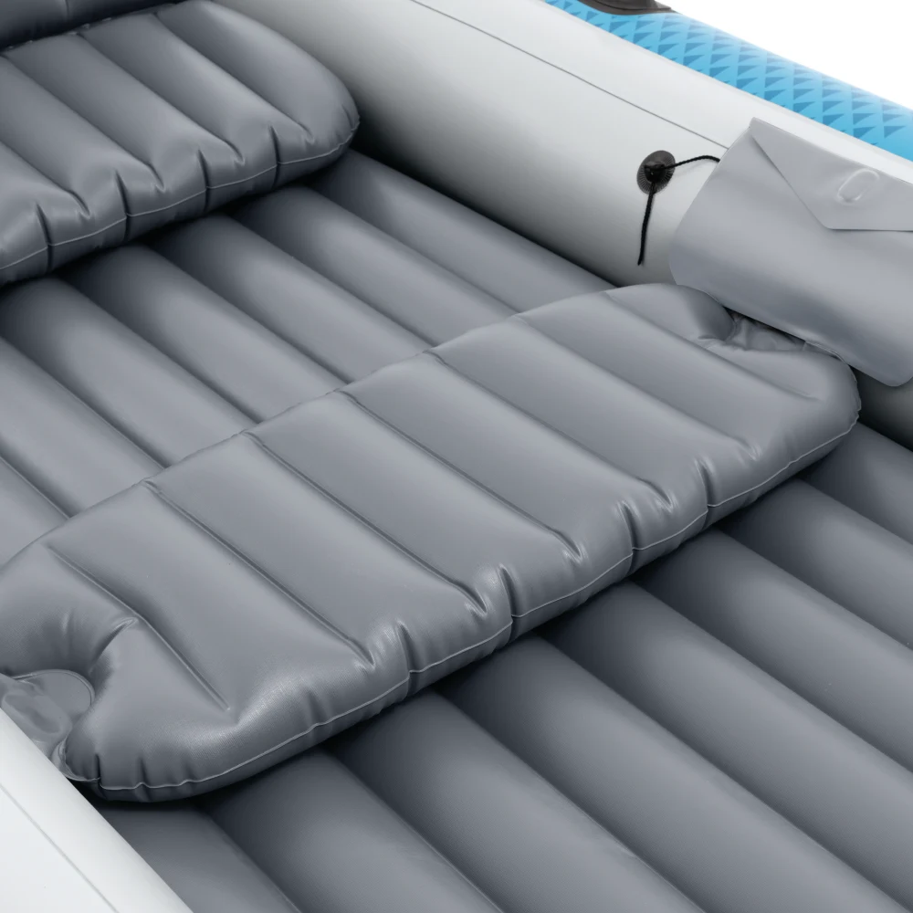 Podeaua gonflabilă oferă o poziție stabilă la ședere, iar două scaune gonflabile individuale cu spătar asigură confort sporit în timpul plimbărilor mai lungi. Pentru manevrare ușoară, barca este echipată cu mânere de prindere, frânghie de siguranță și suporturi laterale pentru vâsle, care ajută la controlul direcției.