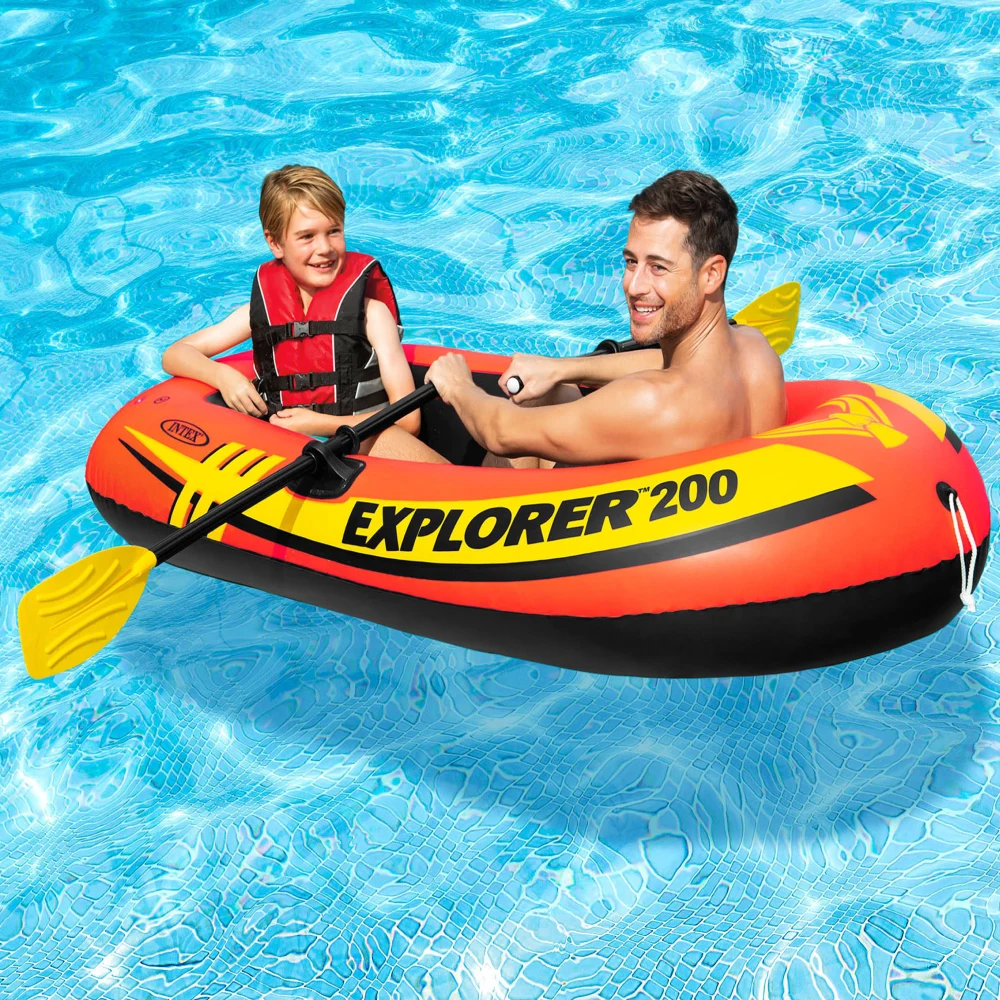 Barcă gonflabilă Explorer 200 cu vâsle și pompă, 185×94×41 cm, max. 95 kg, 6+ ani, Intex (58331)