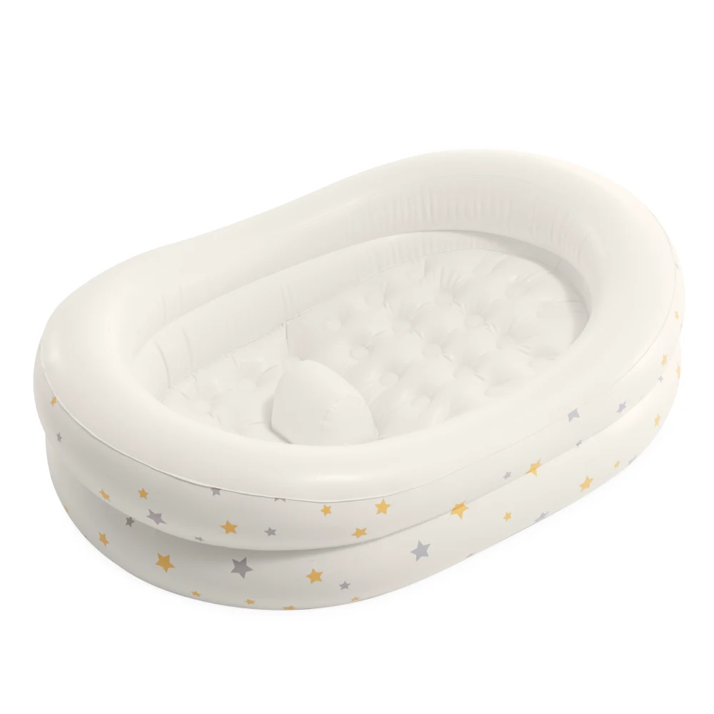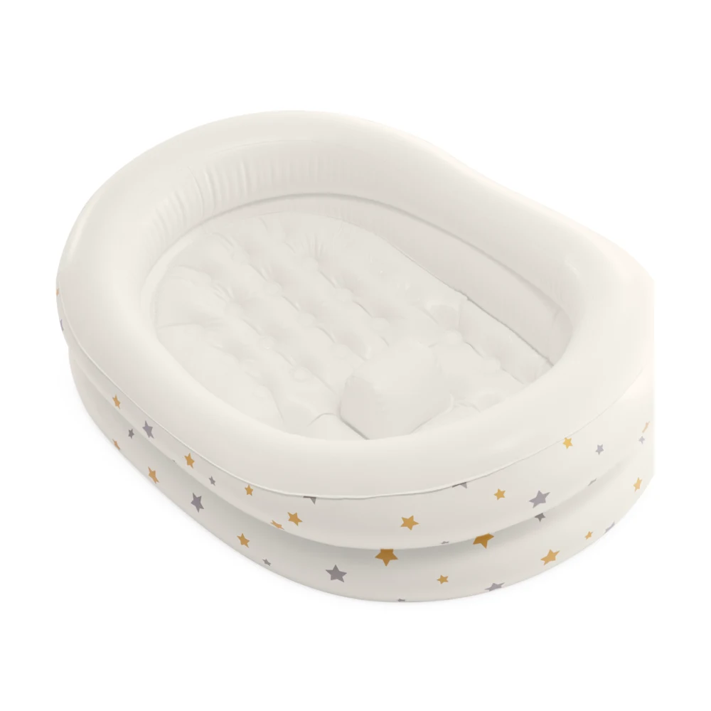 Cădița gonflabilă Starry este realizată pentru a oferi confort și siguranță în timpul băii bebelușului. Forma ergonomică și proeminența de susținere ajută la menținerea unei poziții stabile, reducând riscul de alunecare.