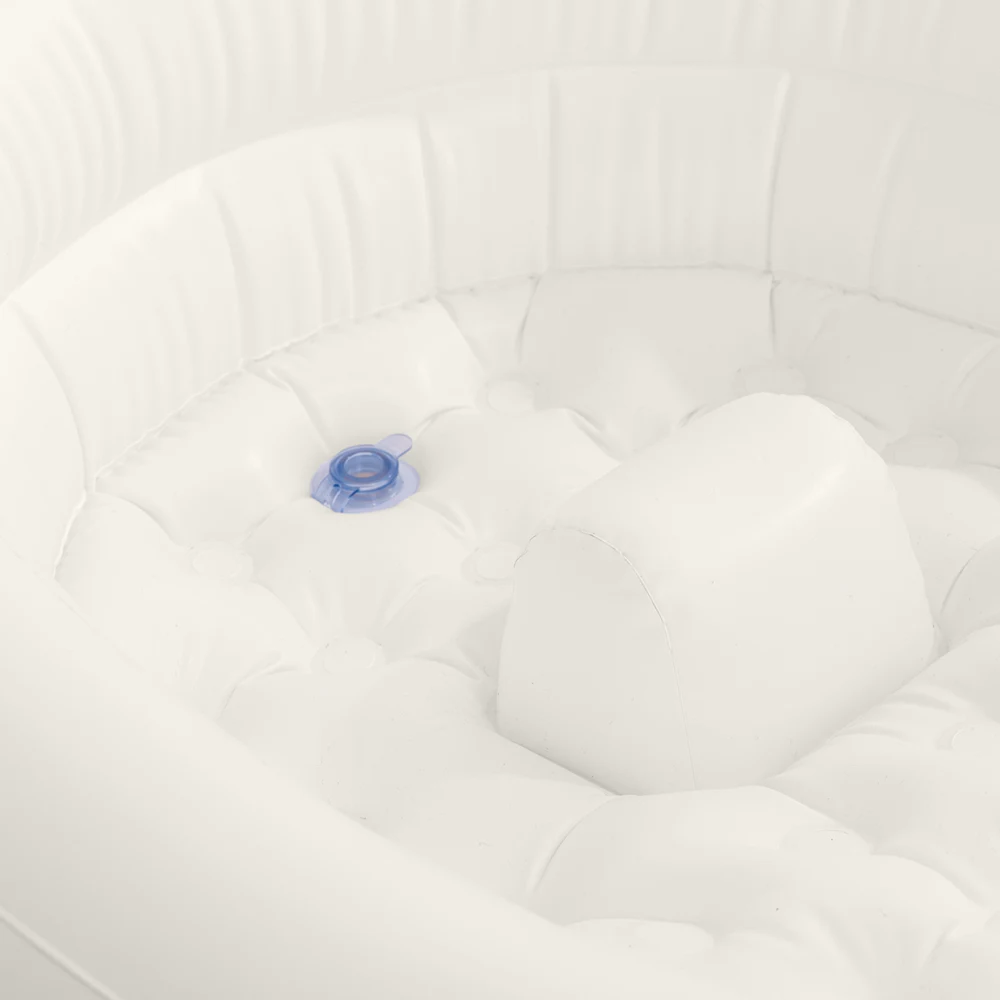 Cădiță gonflabilă pentru baie, concepută pentru bebeluși între 0 și 12 luni, cu formă ergonomică și suprafață moale, ideală pentru utilizare zilnică acasă sau în deplasare.