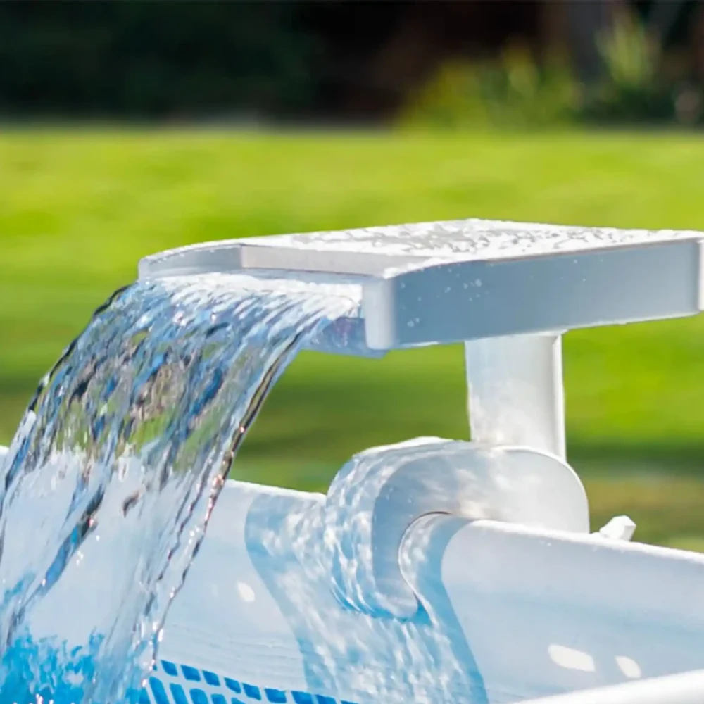 Cascadă iluminată cu LED-uri, destinată piscinelor cu cadru metalic, care creează un jet decorativ de apă și un efect luminos ambiental. Se conectează la sistemul de filtrare și funcționează fără baterii sau alimentare electrică.