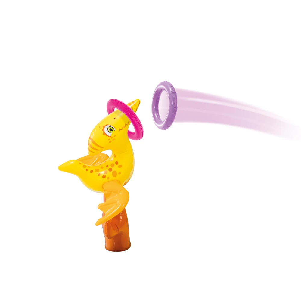 Elementele interactive includ figurine gonflabile tematice, cerc pentru aruncare și mingi colorate, stimulând mișcarea, coordonarea și joaca activă. Centrul este recomandat pentru copii cu vârsta de 2 ani+ și este potrivit pentru utilizare zilnică în curte sau grădină.