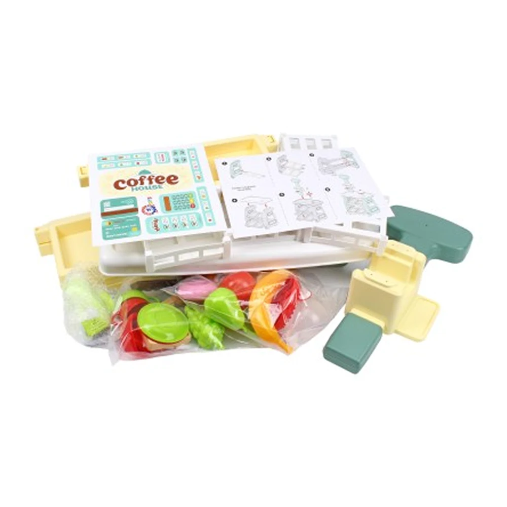 Setul Coffee House, tip cafenea cu accesorii, este conceput pentru copiii de la 3 ani și oferă o experiență de joacă captivantă, inspirată din activitatea unei cafenele sau cofetării. Prin intermediul rafturilor, blatului de lucru și accesoriilor incluse, cei mici pot simula servirea clienților, organizarea produselor și utilizarea casei de marcat.