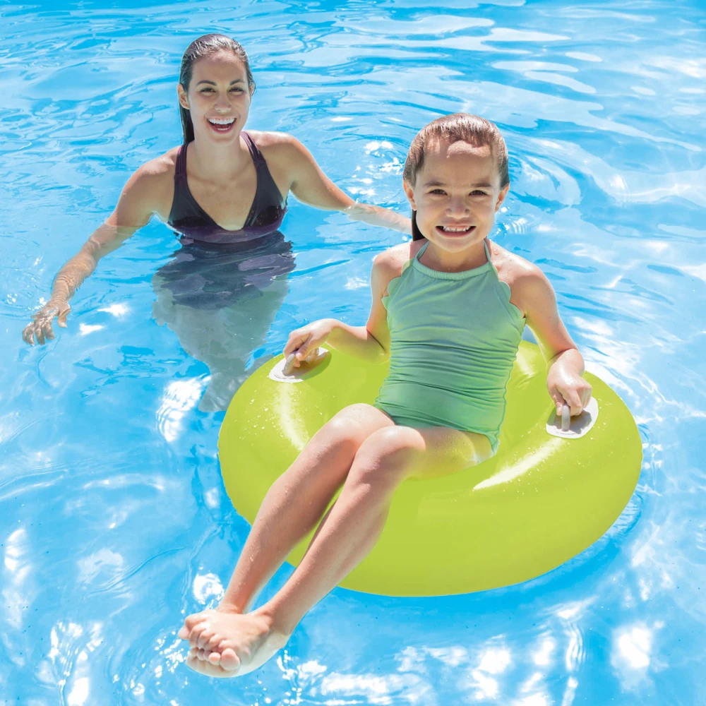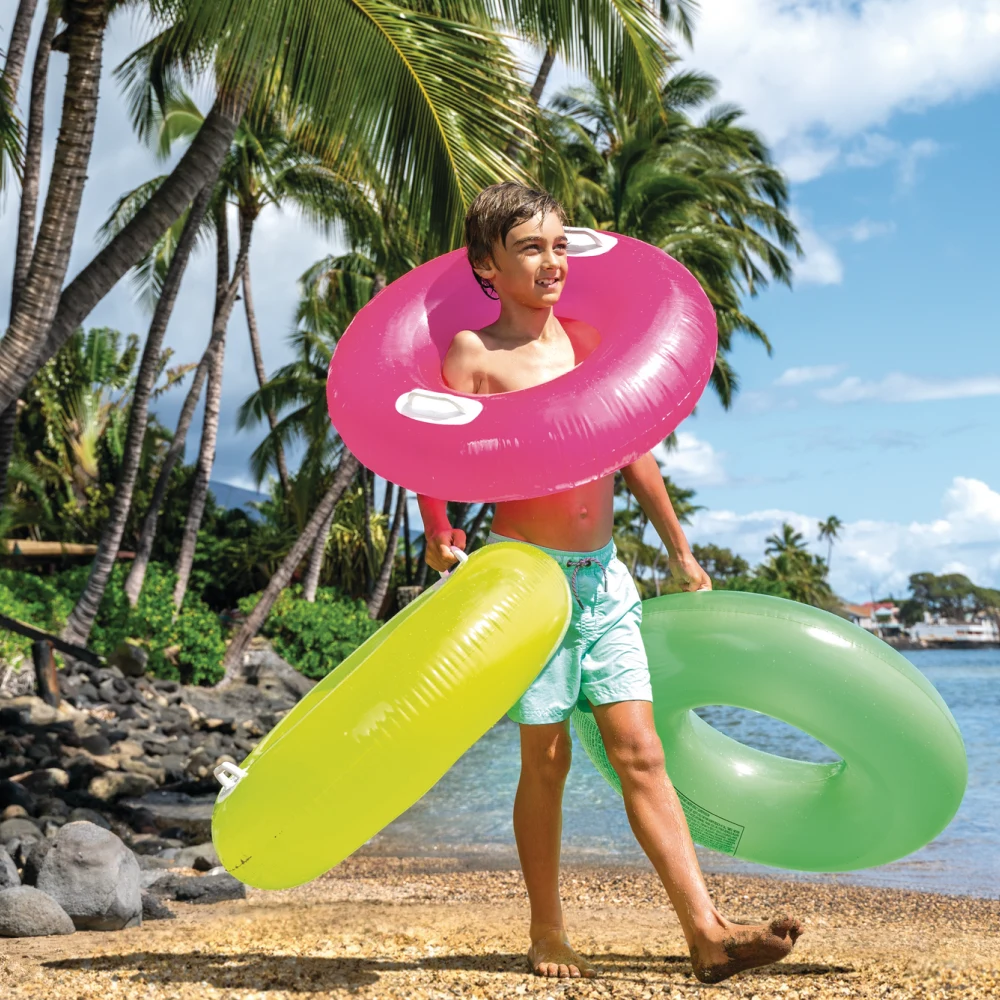 Colacul gonflabil Hi-Gloss este realizat din material durabil, cu suprafață lucioasă și culori neon atractive, ușor de remarcat în apă. Mânerele solide integrate permit o prindere fermă, oferind mai mult control și siguranță în timpul utilizării.