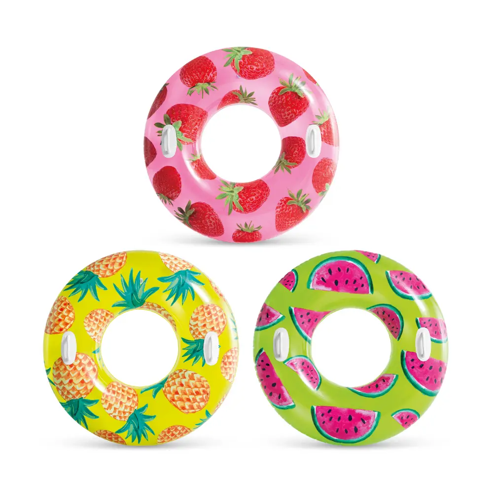 Colac gonflabil cu mânere Tropical Fruit, 107 cm, max. 80 kg, 3 culori, 9+ ani, Intex (56261)