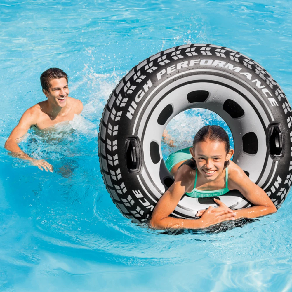 Colac gonflabil de înot tip anvelopă, cu diametru de 114 cm și greutate maximă suportată de 100 kg, potrivit pentru copii peste 9 ani, adolescenți și adulți. Acest cerc gonflabil cu mânere integrate oferă stabilitate și prindere sigură în apă, fiind ideal pentru piscină, lac sau mare.