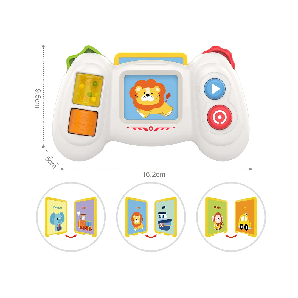 Consola educativă interactivă cu carduri este o jucărie special creată pentru învățarea timpurie, care combină joaca cu descoperirea. Copiii pot introduce cardurile ilustrate și interacționa cu butoanele pentru a declanșa sunete și efecte, învățând animale, obiecte și asocieri simple.