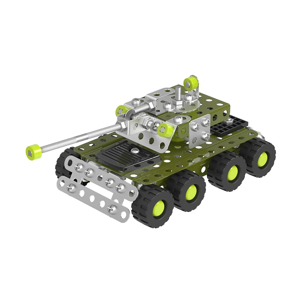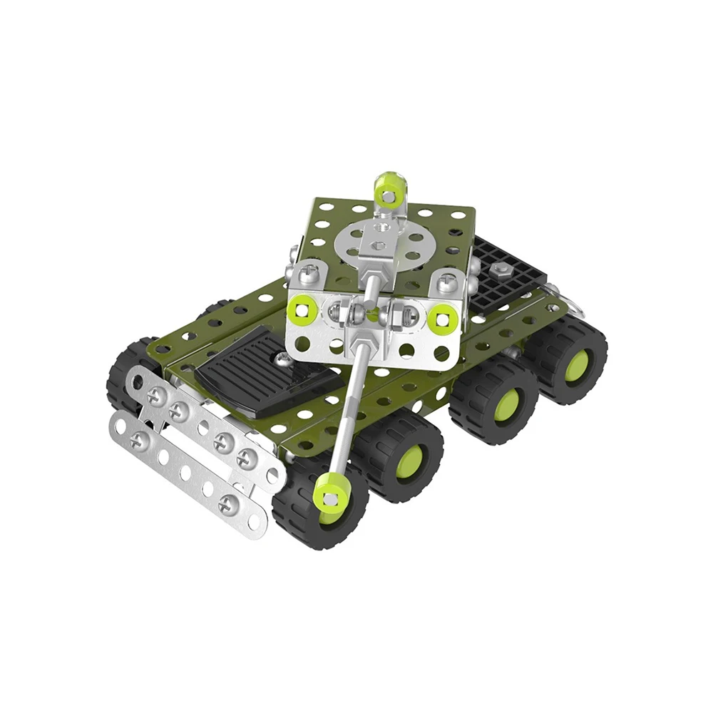 Constructorul metalic Tank este un set educativ conceput pentru copiii pasionați de construcții și vehicule militare. Setul conține 174 de piese metalice care permit asamblarea unui model de tanc, urmând instrucțiunile incluse.