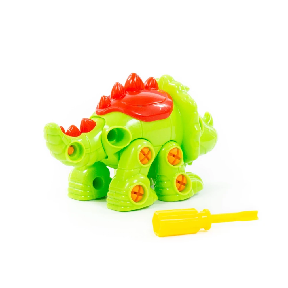 Constructorul dinozaur Triceratops de la Polesie este conceput pentru a stimula curiozitatea și îndemânarea copiilor. Setul conține 32 de piese care se asamblează cu ajutorul unei șurubelnițe din plastic, incluse în pachet, permițând copilului să construiască pas cu pas dinozaurul.