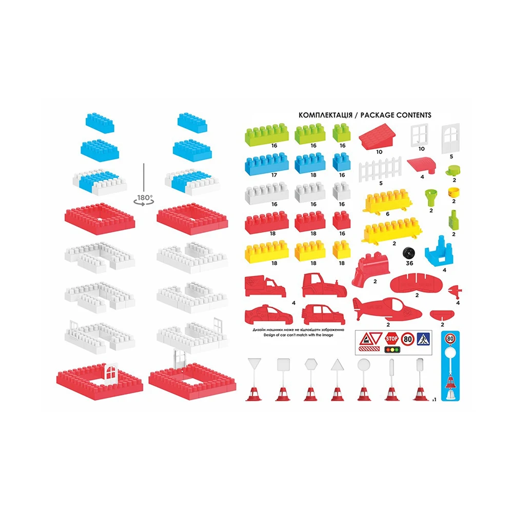 Constructorul Nr. 6 cu 380 piese oferă copiilor posibilitatea de a construi o varietate mare de structuri – case, clădiri, vehicule, drumuri și decoruri urbane – stimulând creativitatea și imaginația. Setul conține piese colorate, ușor de îmbinat, concepute special pentru mâinile copiilor.