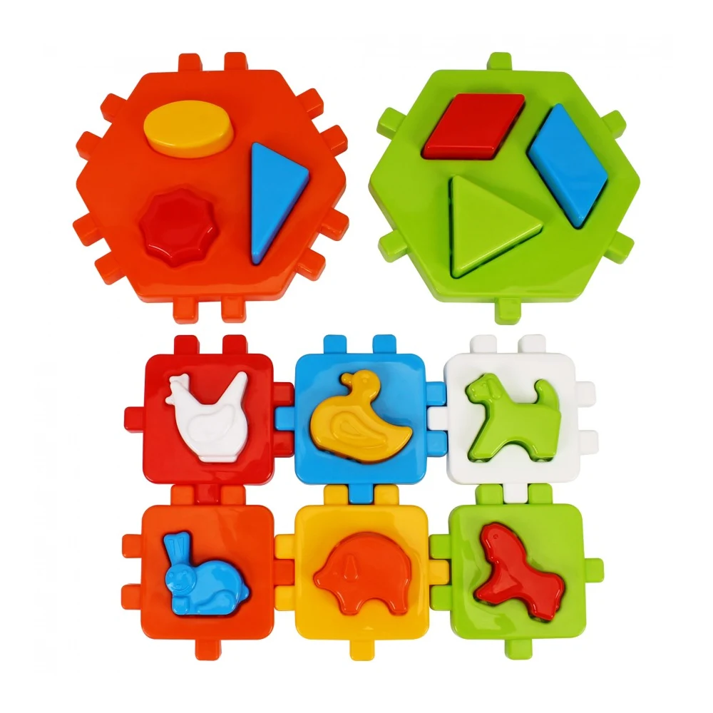 Prin introducerea formelor în orificiile potrivite, copilul își dezvoltă gândirea logică, coordonarea mână–ochi și recunoașterea formelor și culorilor. Jucăria este realizată din plastic rezistent, sigur pentru cei mici, cu margini rotunjite.