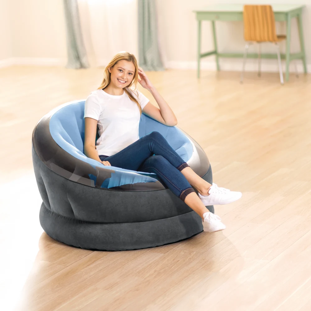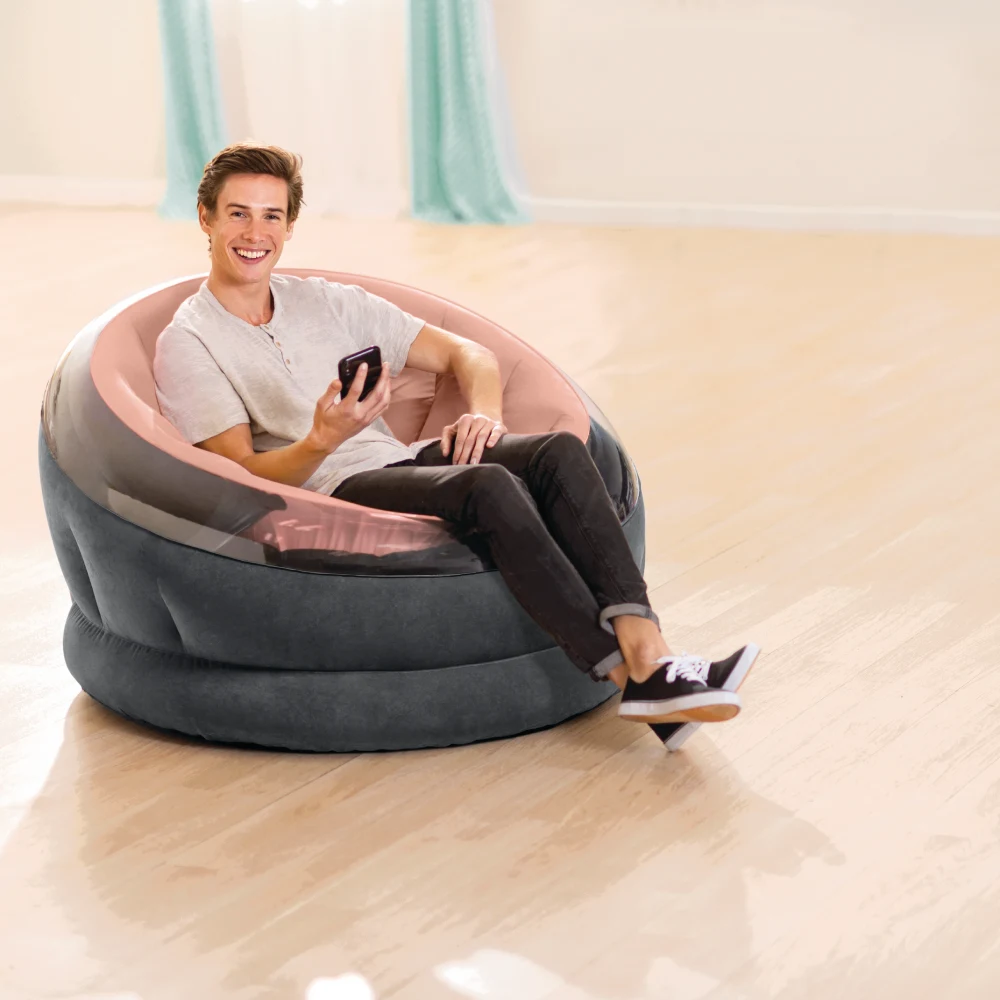 Fotoliu gonflabil confortabil, cu formă rotundă și spătar bine definit, potrivit pentru relaxare în interior sau în exterior. Designul stabil și șezutul adânc oferă o poziție comodă pentru momentele de odihnă zilnică.