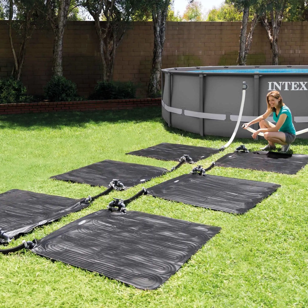 Încălzitor solar tip panou Solar Mat, conceput pentru creșterea naturală a temperaturii apei din piscină cu aproximativ 3–5°C, în funcție de condițiile meteo. Se conectează la sistemul de filtrare și utilizează energia solară pentru a încălzi apa eficient și economic, fiind ideal pentru piscine supraterane.