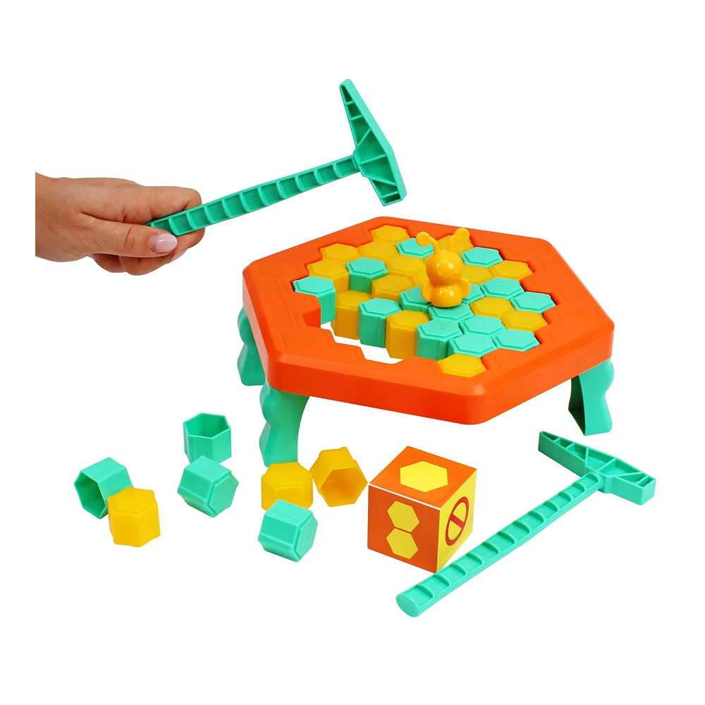 Copiii folosesc ciocănelul pentru a lovi pe rând piesele colorate, exersând precizia și autocontrolul. Jocul este potrivit pentru mai mulți jucători, ceea ce îl face ideal pentru joaca în familie sau cu prietenii.