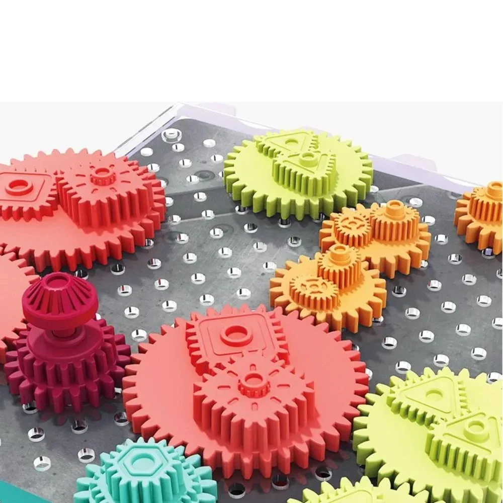 Acest joc de masă educativ cu roți dințate le oferă copiilor o experiență practică de învățare prin joacă. Copiii pot monta și combina roțile dințate pe tablă, observând cum mișcarea unei piese pune în funcțiune întregul mecanism.