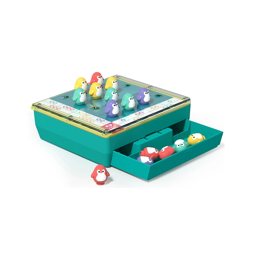 Joc de masă educativ pentru copii, cu pinguini colorați, conceput pentru dezvoltarea gândirii logice, a atenției și a capacității de rezolvare a problemelor, prin activități interactive și distractive.