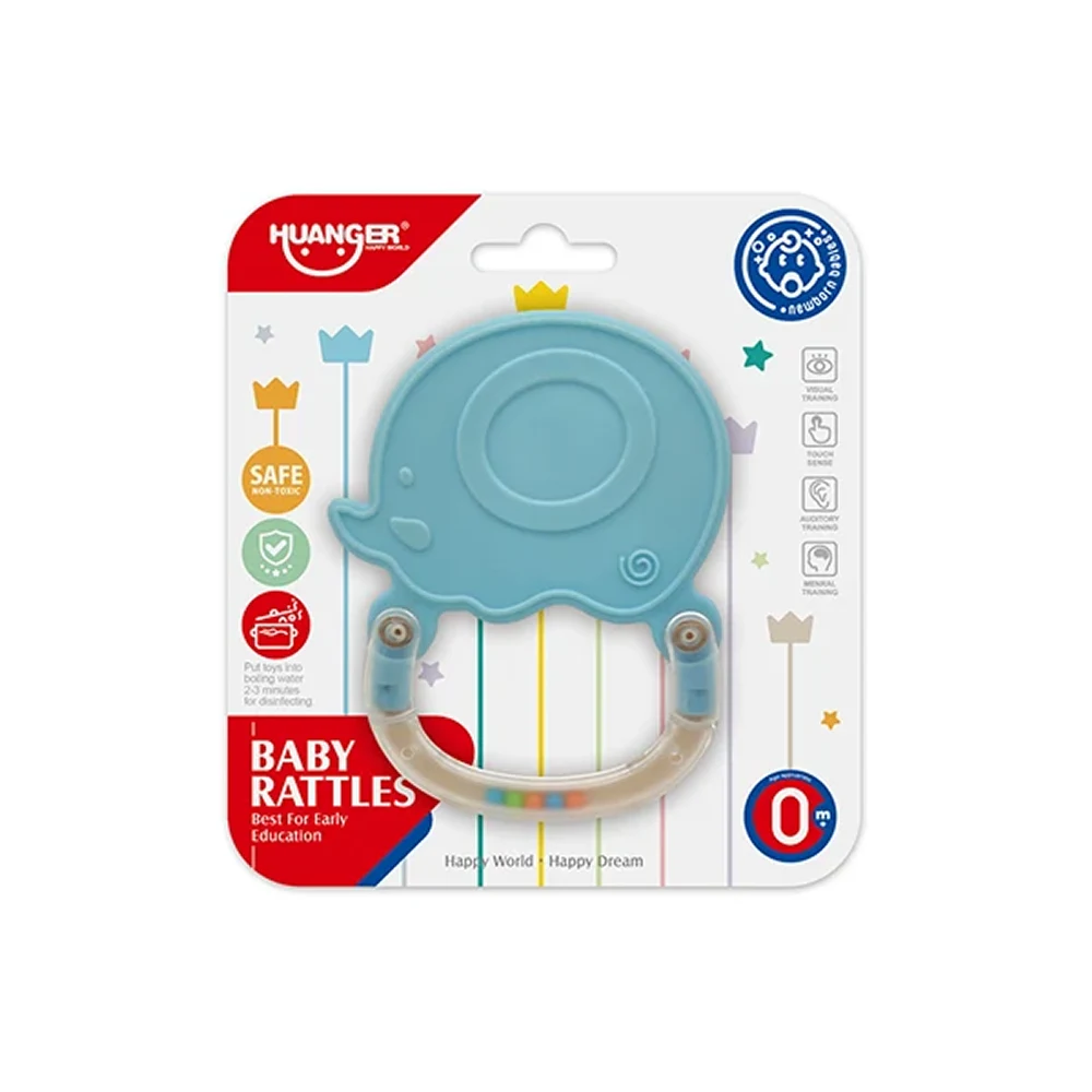 Jucărie de dentiție cu zornăitoare – balenă, Huanger HE0102 (18530)