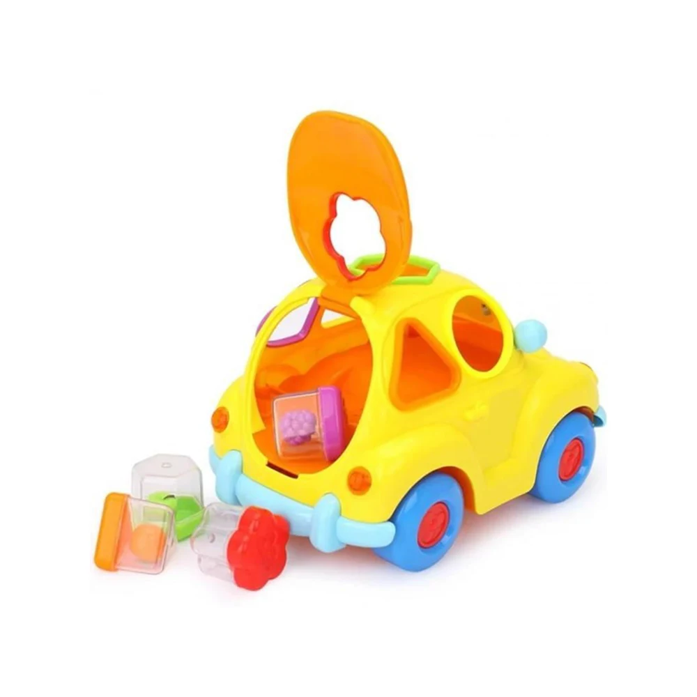 Mașinuță educativă cu funcție sorter, muzică și mișcare, ideală pentru învățarea formelor, culorilor și dezvoltarea coordonării la copiii mici.