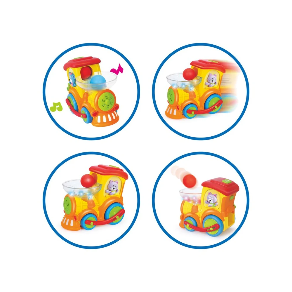 Acest trenuleț interactiv oferă multiple moduri de joacă și stimulează dezvoltarea copilului prin mișcare, sunete și activități educative. Copiii pot introduce bilele colorate în tren, urmărind cum acestea sunt transportate și lansate, ceea ce încurajează coordonarea mână–ochi și gândirea logică.