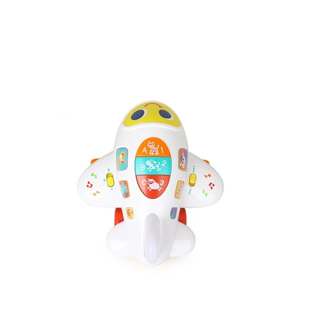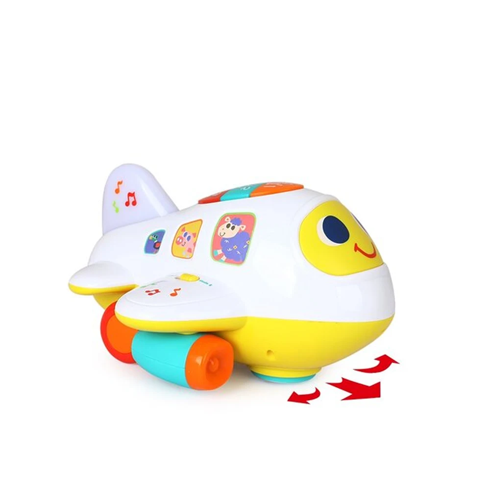 Jucărie interactivă sub formă de avion, cu muzică, sunete și lumini, creată pentru a sprijini învățarea timpurie, coordonarea și joaca activă a copiilor de la 12 luni.