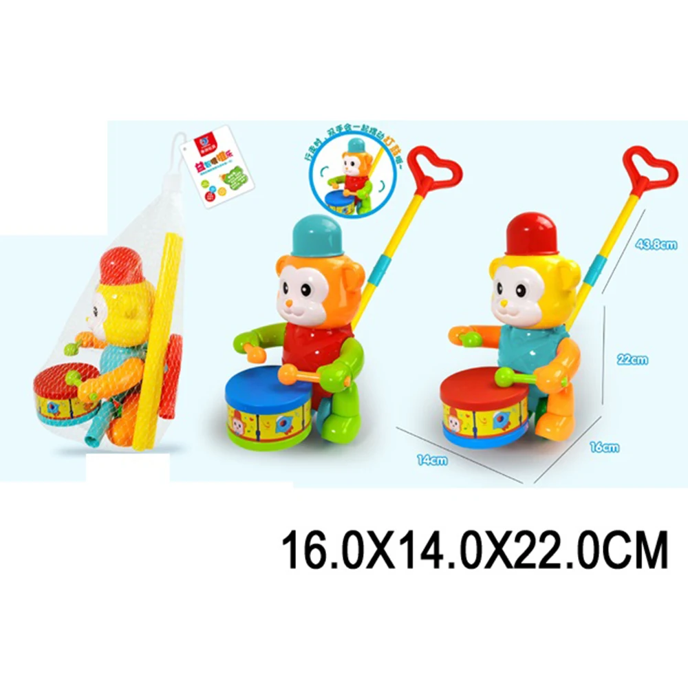 Această jucărie colorată cu mâner lung este perfectă pentru micuții care învață să meargă sau adoră jucăriile în mișcare. Fabricată din plastic rezistent și sigur, jucăria se rostogolește ușor pe podea, scoțând sunete vesele și efecte luminoase care atrag atenția copilului.