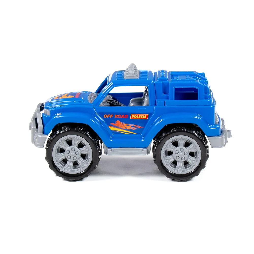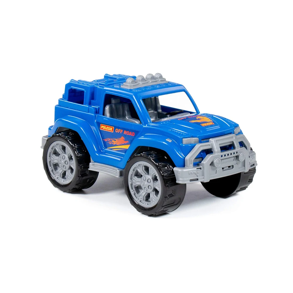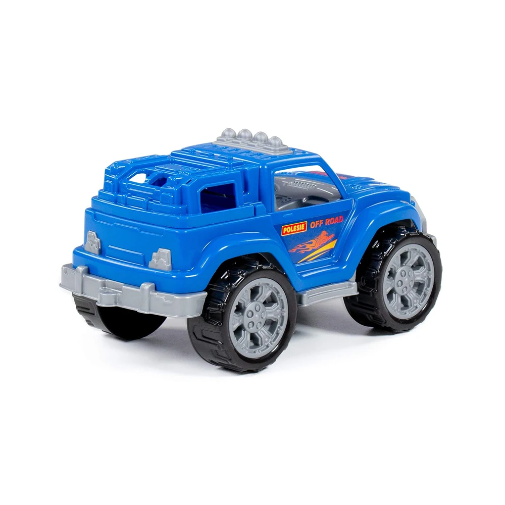 Mașină de jucărie tip off-road, cu design robust și roți mari, ideală pentru jocuri active și scenarii de aventură. Potrivită pentru joaca zilnică, atât în interior, cât și afară.
