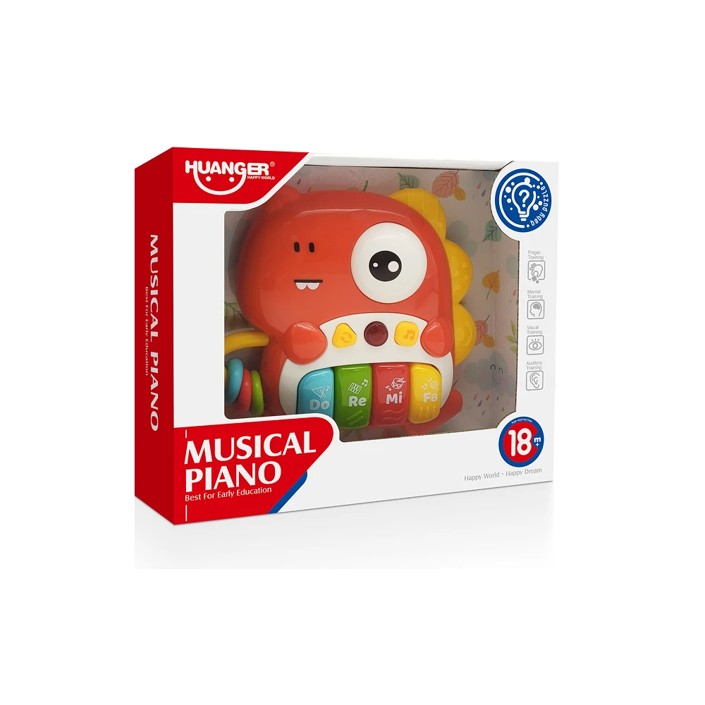 Această jucărie pian muzical cu design de dinozaur este concepută special pentru copiii mici, stimulând interesul pentru muzică și sunete încă de la o vârstă fragedă. Clapele mari și colorate sunt ușor de apăsat și redau sunete muzicale plăcute, contribuind la dezvoltarea coordonării mână–ochi și a auzului muzical.