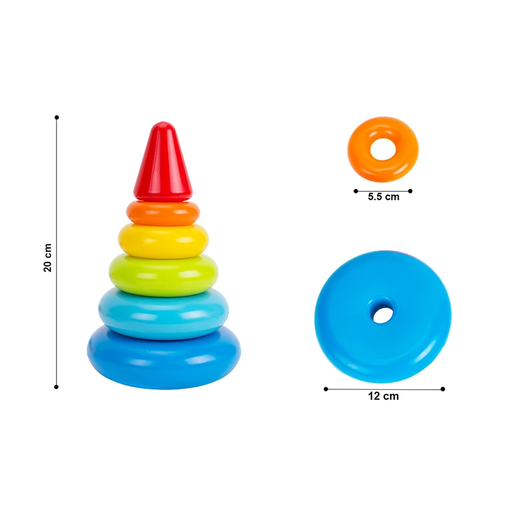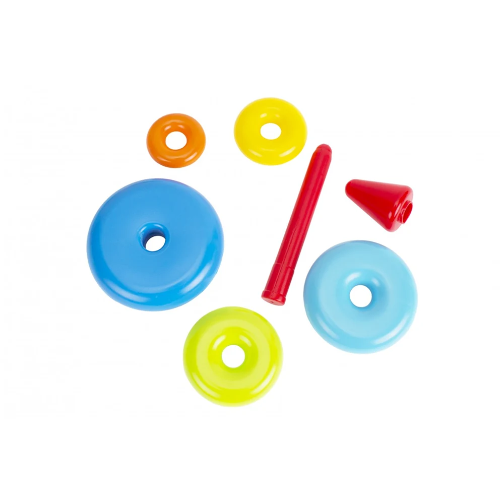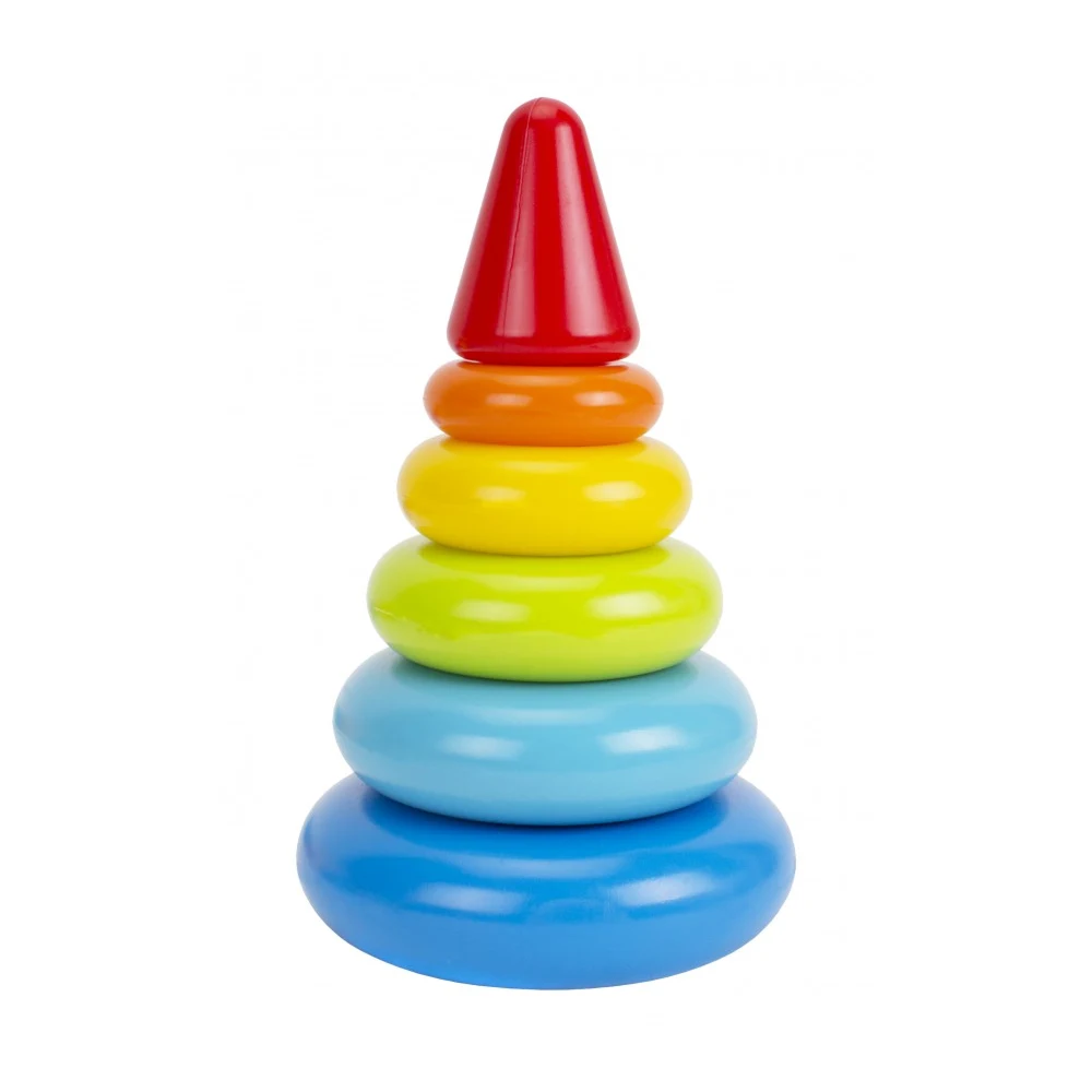 Piramida cu inele colorate este o jucărie esențială pentru dezvoltarea timpurie a copiilor, ajutând la îmbunătățirea coordonării mână–ochi, a motricității fine și a capacității de sortare. Inelele de diferite mărimi și culori pot fi așezate pe suport într-o ordine variată, stimulând gândirea logică și creativitatea copilului.