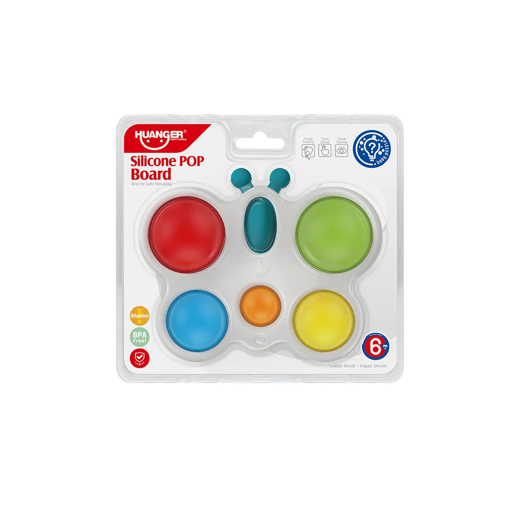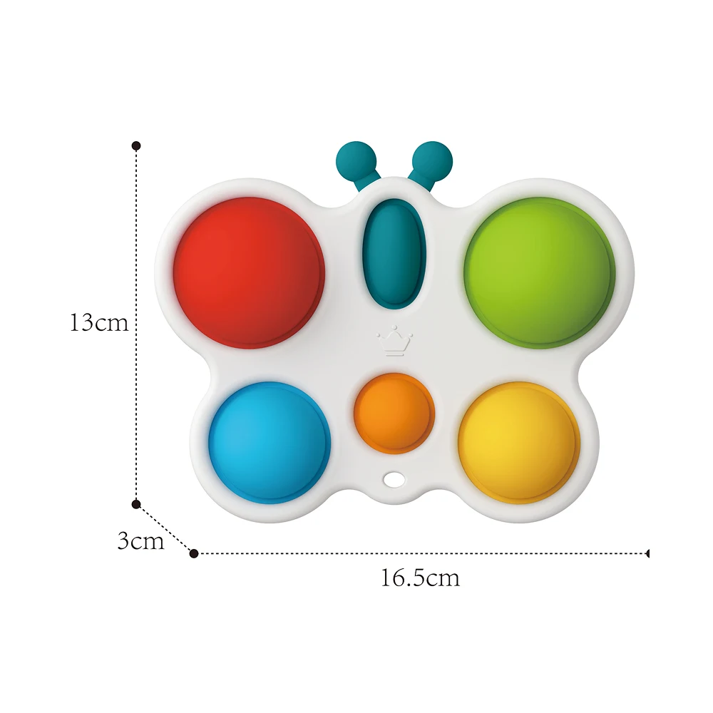 Jucăria senzorială tip pop-it din silicon – fluturaș este ideală pentru copiii mici, oferind o experiență tactilă plăcută prin apăsarea butoanelor moi din silicon. Fiecare element poate fi apăsat și eliberat, stimulând simțul tactil și coordonarea mână–ochi.