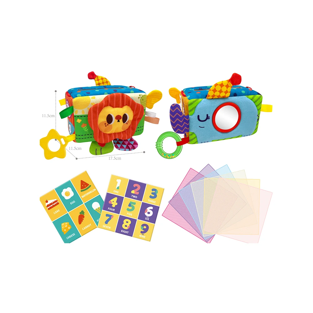 Culorile vii și ilustrațiile prietenoase captează atenția bebelușului, iar materialele textile sunt sigure și confortabile pentru joacă zilnică.