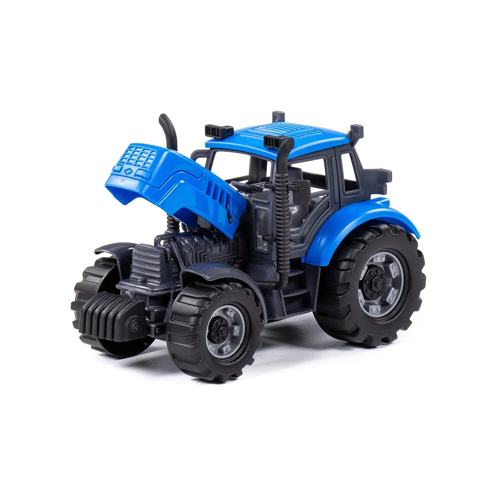 Tractor cu inerție robust și realist, ideal pentru joaca de interior și exterior, livrat în cutie, conceput pentru copiii pasionați de utilaje agricole.