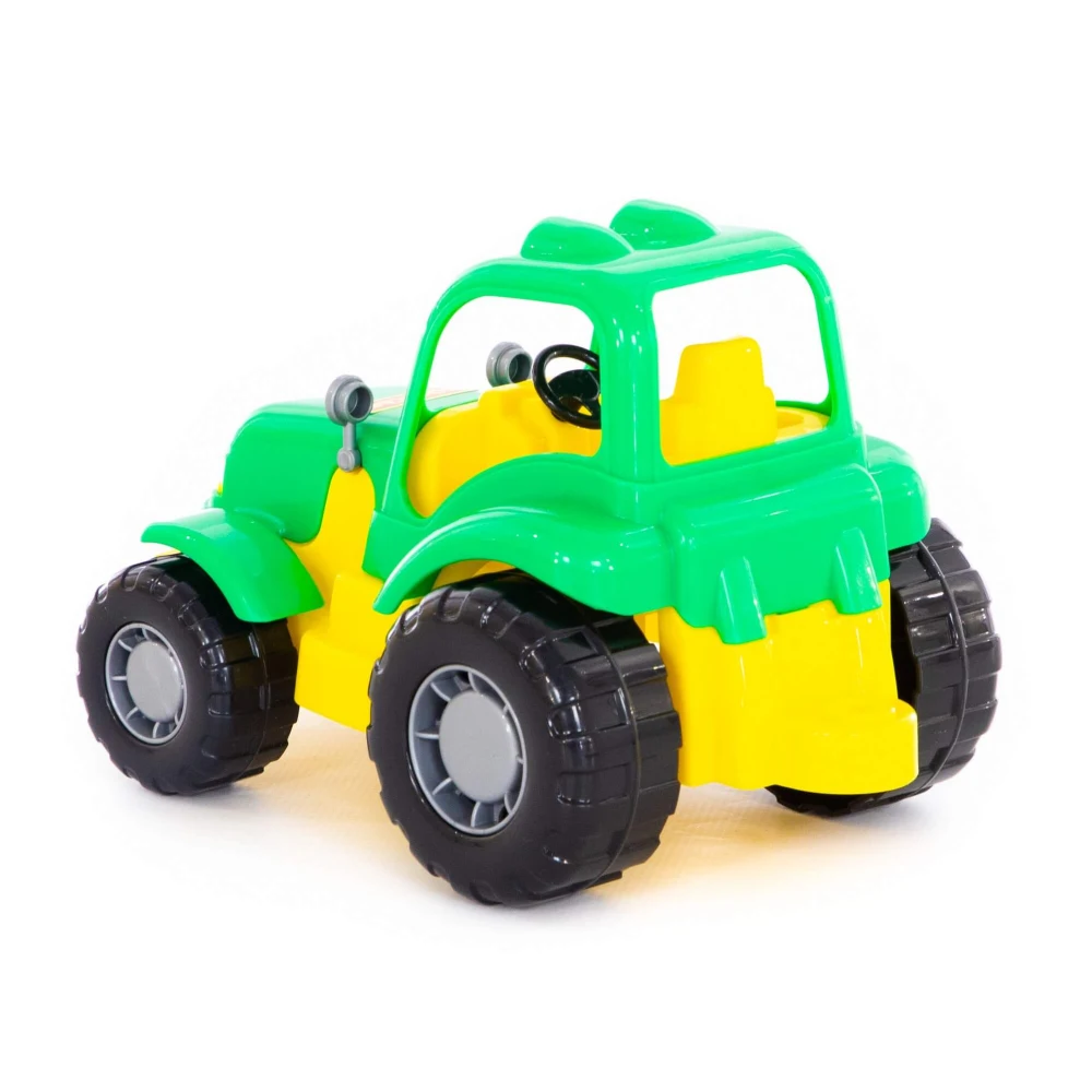 Tractorul de jucărie este ideal pentru jocurile copiilor mici, oferind distracție, rezistență și stimularea imaginației prin jocuri de rol.
