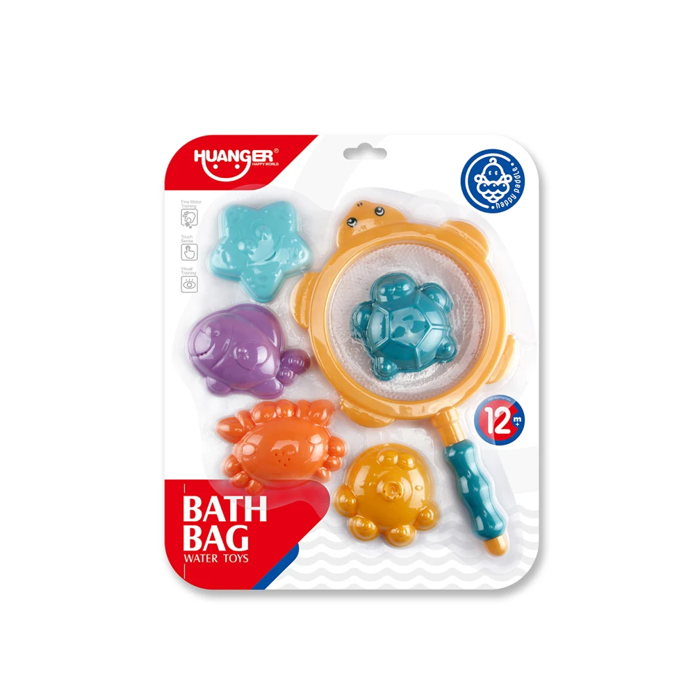 Set jucării de baie cu plasă de pescuit și animăluțe,Huanger HE0229 (78690)