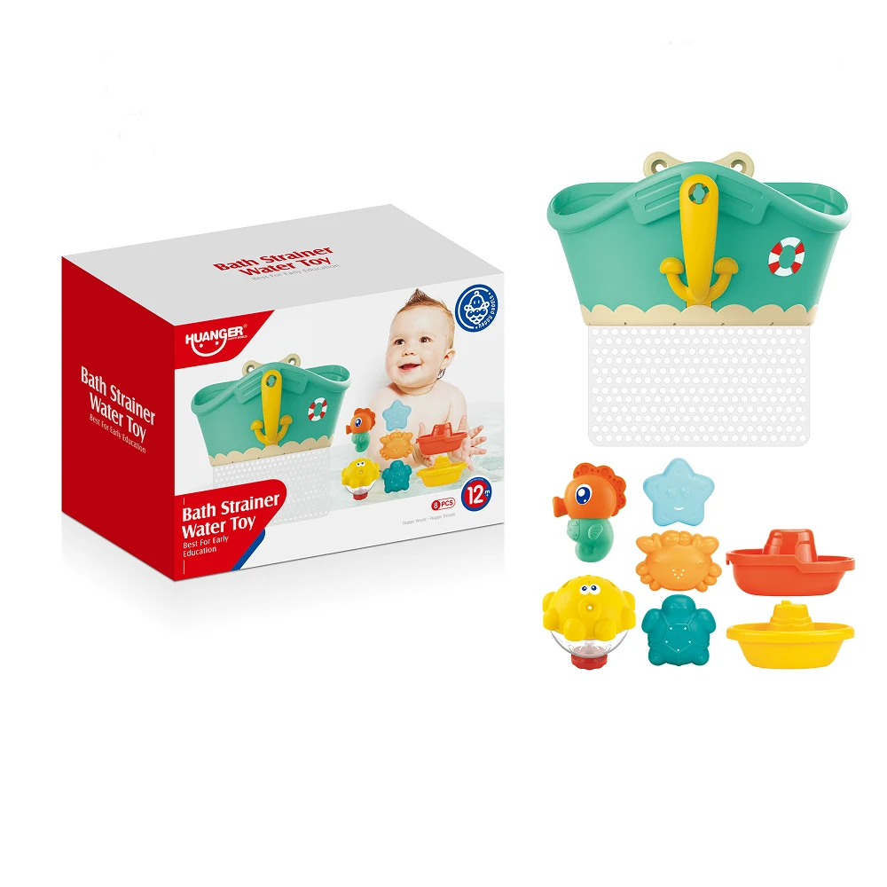 Set de jucării pentru baie cu animale și bărci, cu coș de depozitare, Huanger HE0271 (19018)