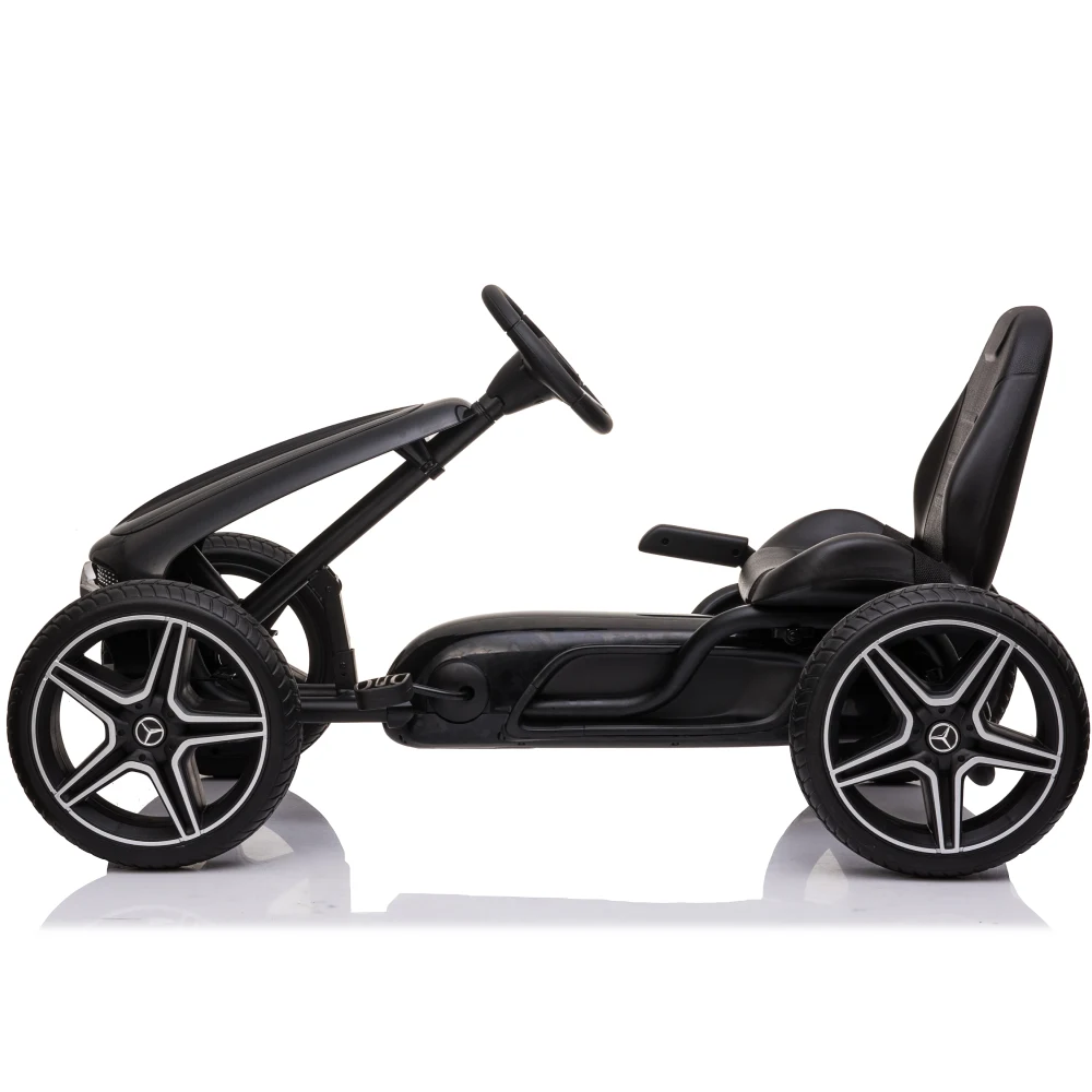 Kart cu pedale pentru copii Mercedes Benz cu scaun reglabil, roți EVA și centură de siguranță. Model stabil și ideal pentru joacă activă.